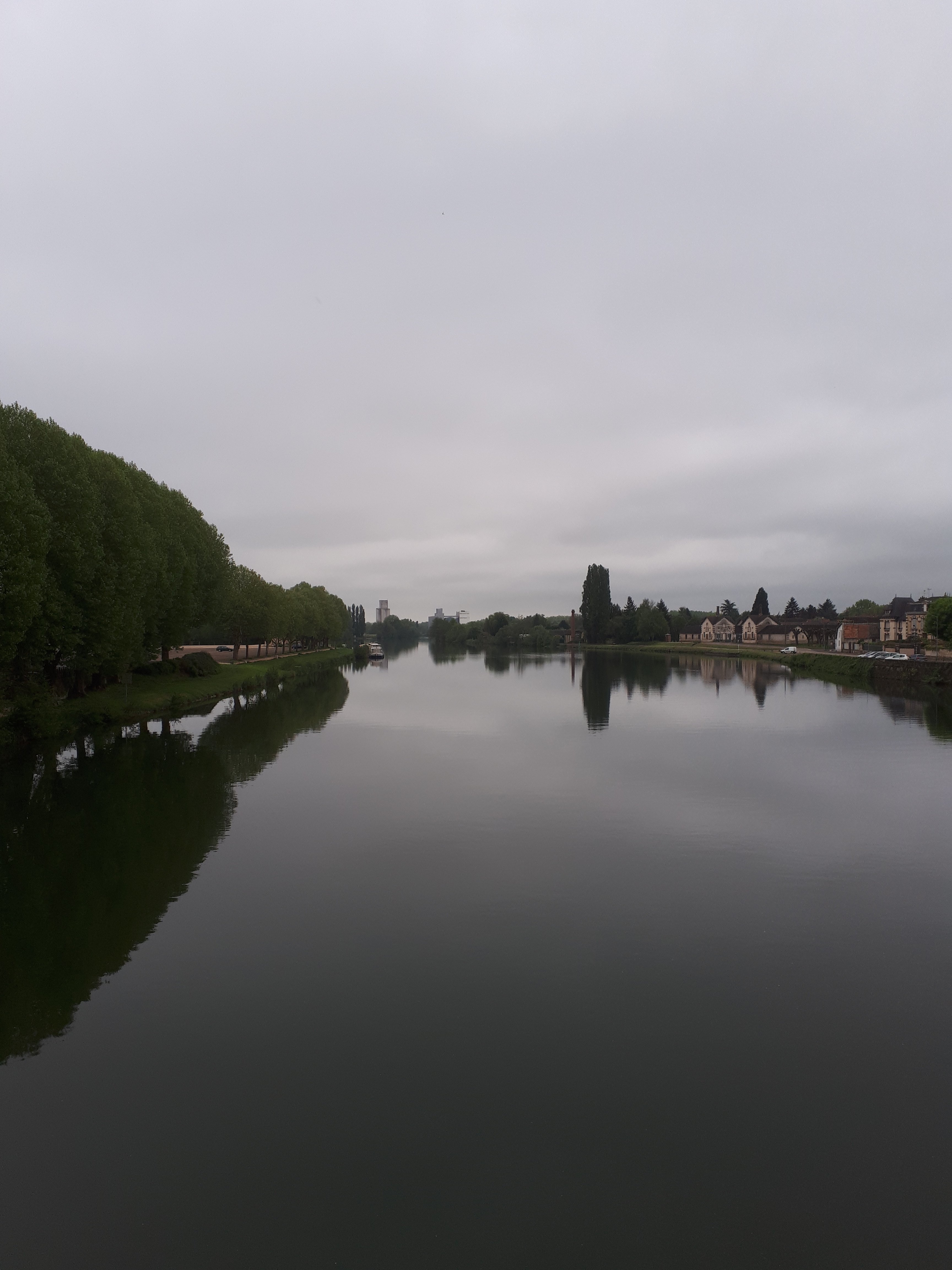 Vandaag weer een flinke trip om morgen Auxerre na een korte wandeling te bezoeken. Rond 10 u nog even de bakker bezocht voor wat mondvoorraad en dan op weg. Vanop de pont Saint-nicolas nog even een laatste blik naar de rivier waarlangs ik gisteren da ganse dag stapte.