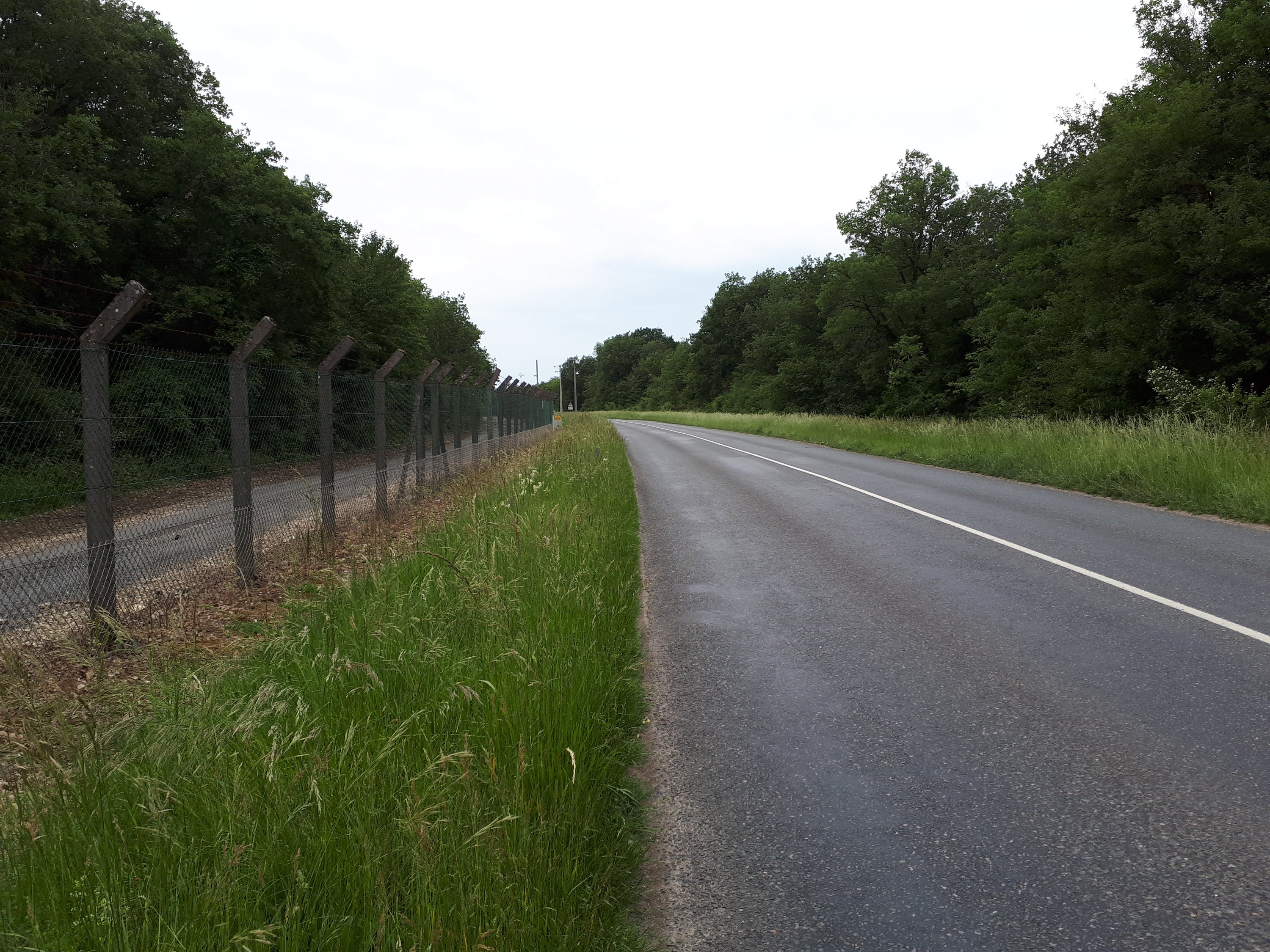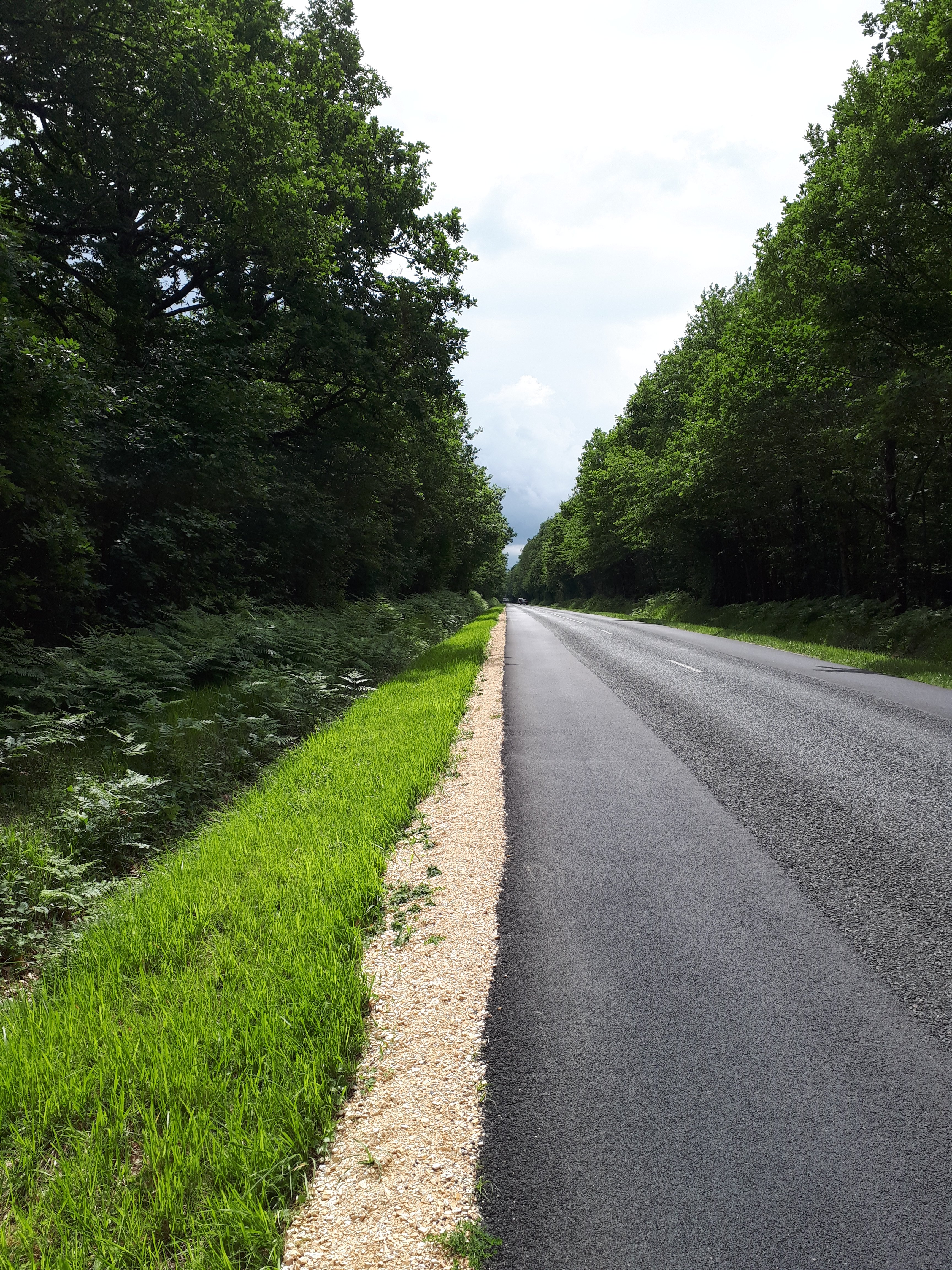 De weg ging verder maar verliet de departementales en werd een aardeweg. Een oude chaussee romaine. Lijnrecht richting Bourges.