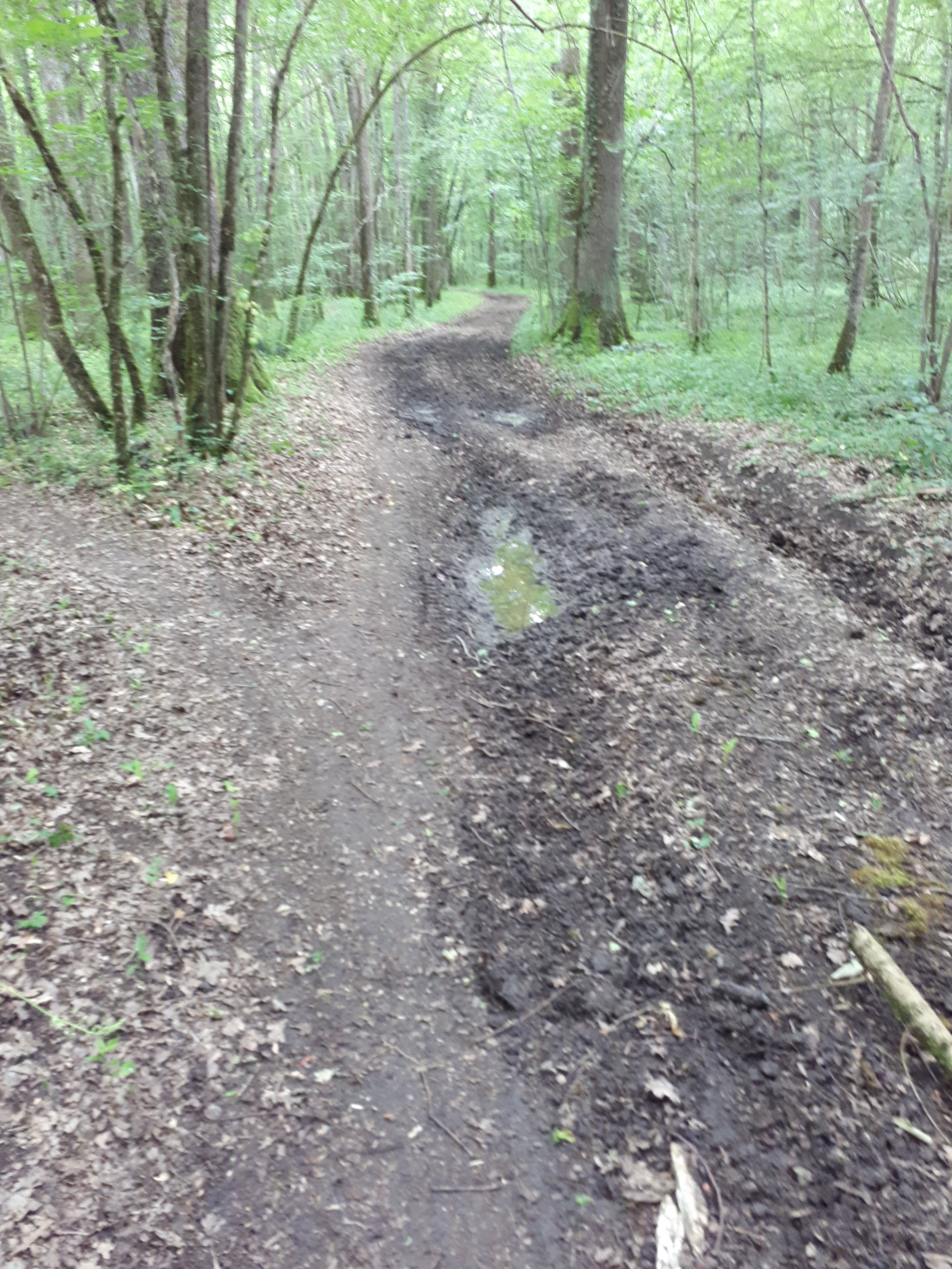 En dan dwars door een bos. De Franse architect had me gisteravond een foto getoond van everzwijnen die hij gezien had. Bij mij zijn het enkel sporen van die lieve dieren.