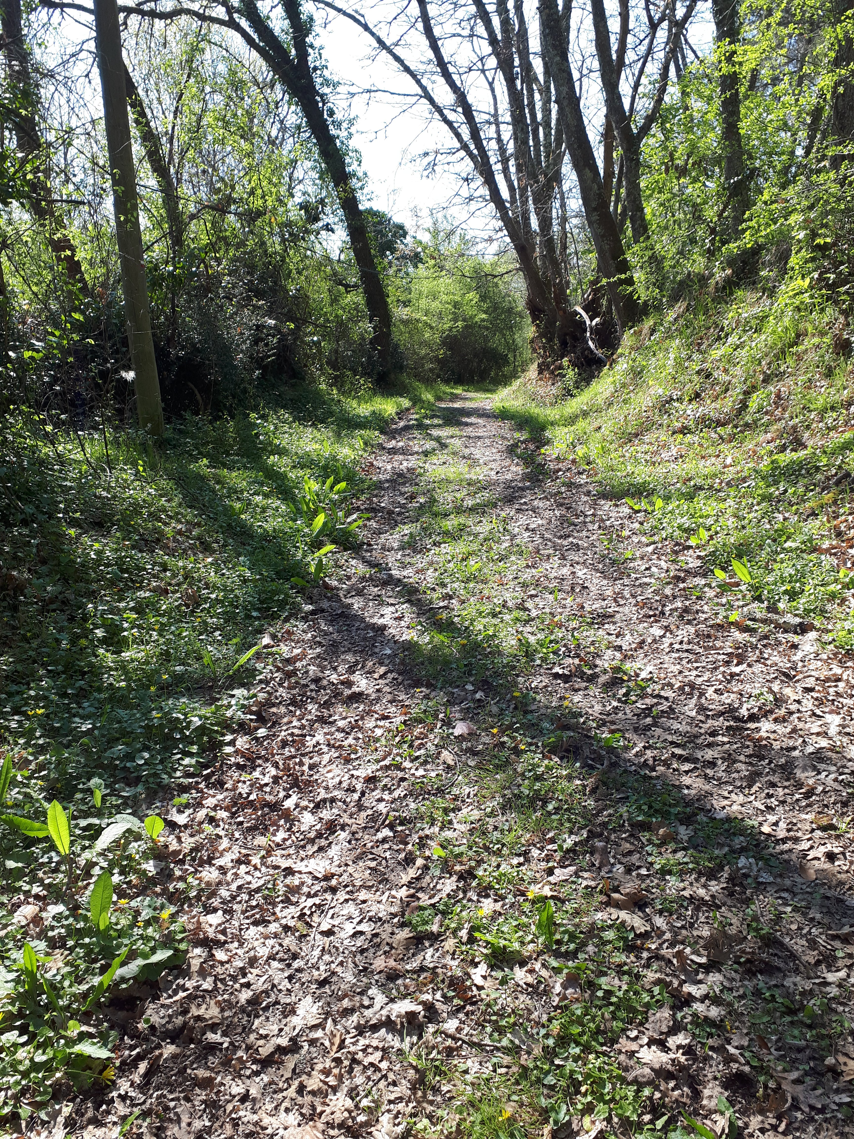 Heerlijk holle wegen ook. Dat moet vooral in de warme maanden voor afkoeling zorgen. Pelgrims wandelen door een groene tunnel werkelijk. Rond 14 u lunchtijd. Een idyllisch plaatsje gevonden dit keer. Een oud brugje, banken, lommer en rust. Hier is Caesar nog gepasseerd.