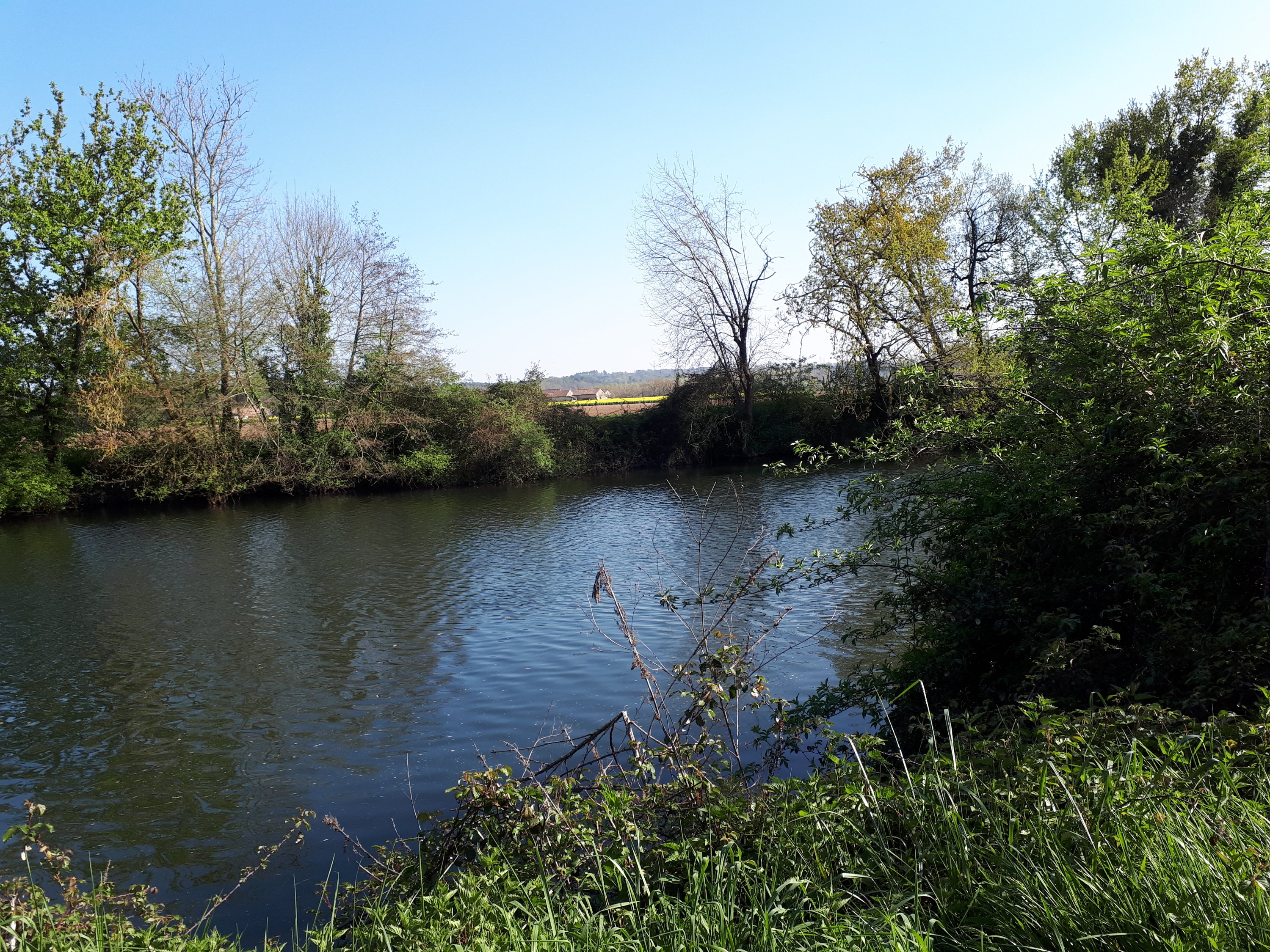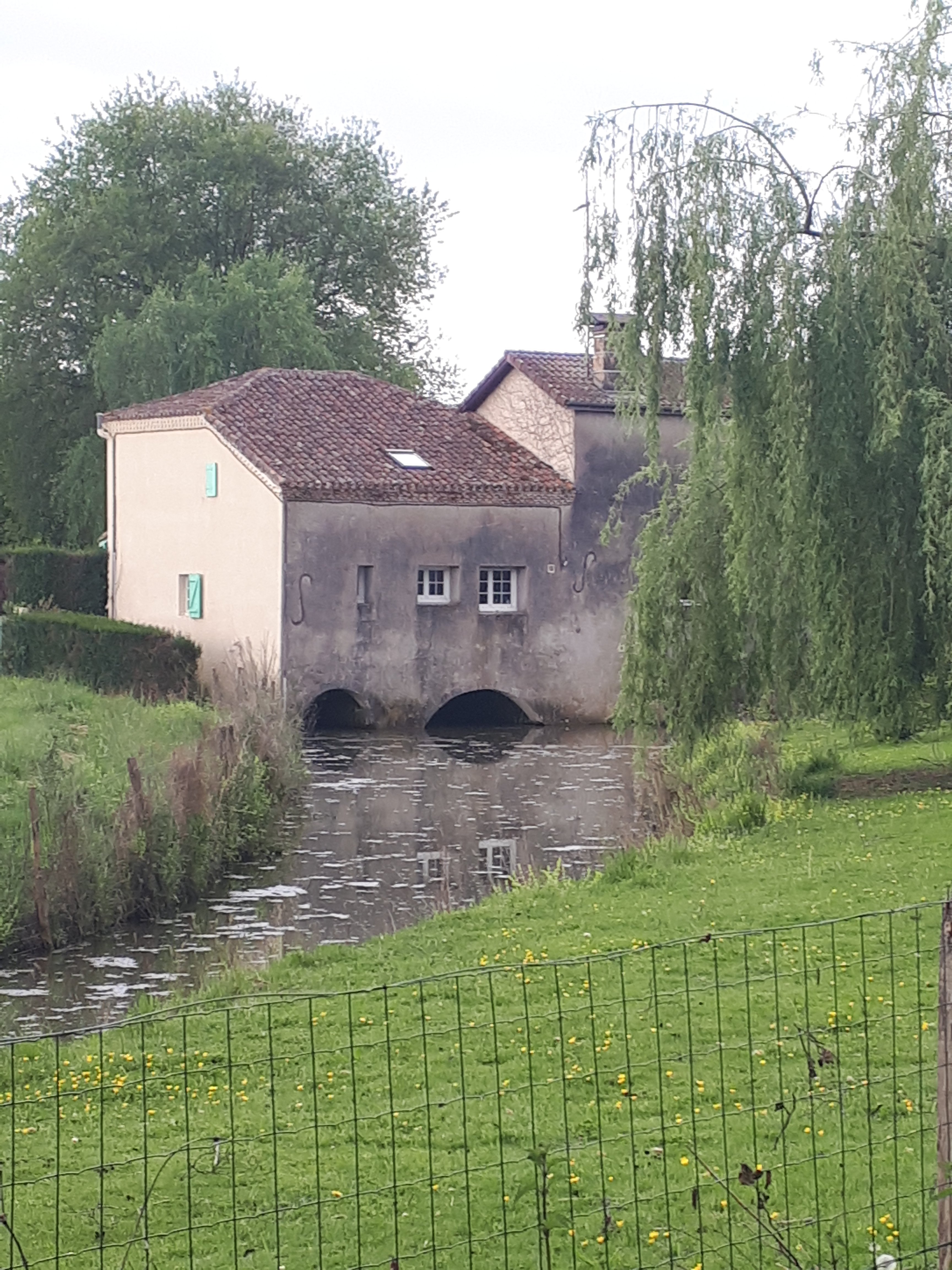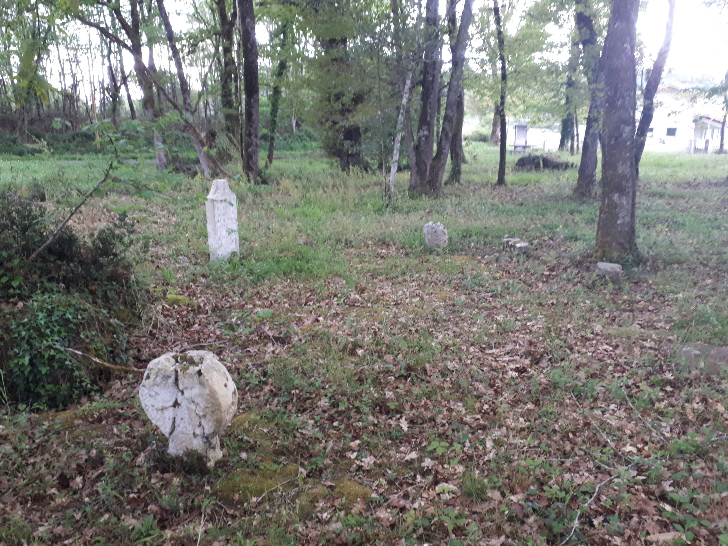 De tocht door de Landes loopt op zijn einde, het landschap wijzigt. Het wordt glooiender en groener, natter. In zo’n groene vallei naast de weg vond ik de resten van een middeleeuwse kerk en kerkhof. Goed dat er een bord stond want buiten een paar 16de eeuwse grafstenen zag je niet veel meer van La Bastide de Pont la Reine.