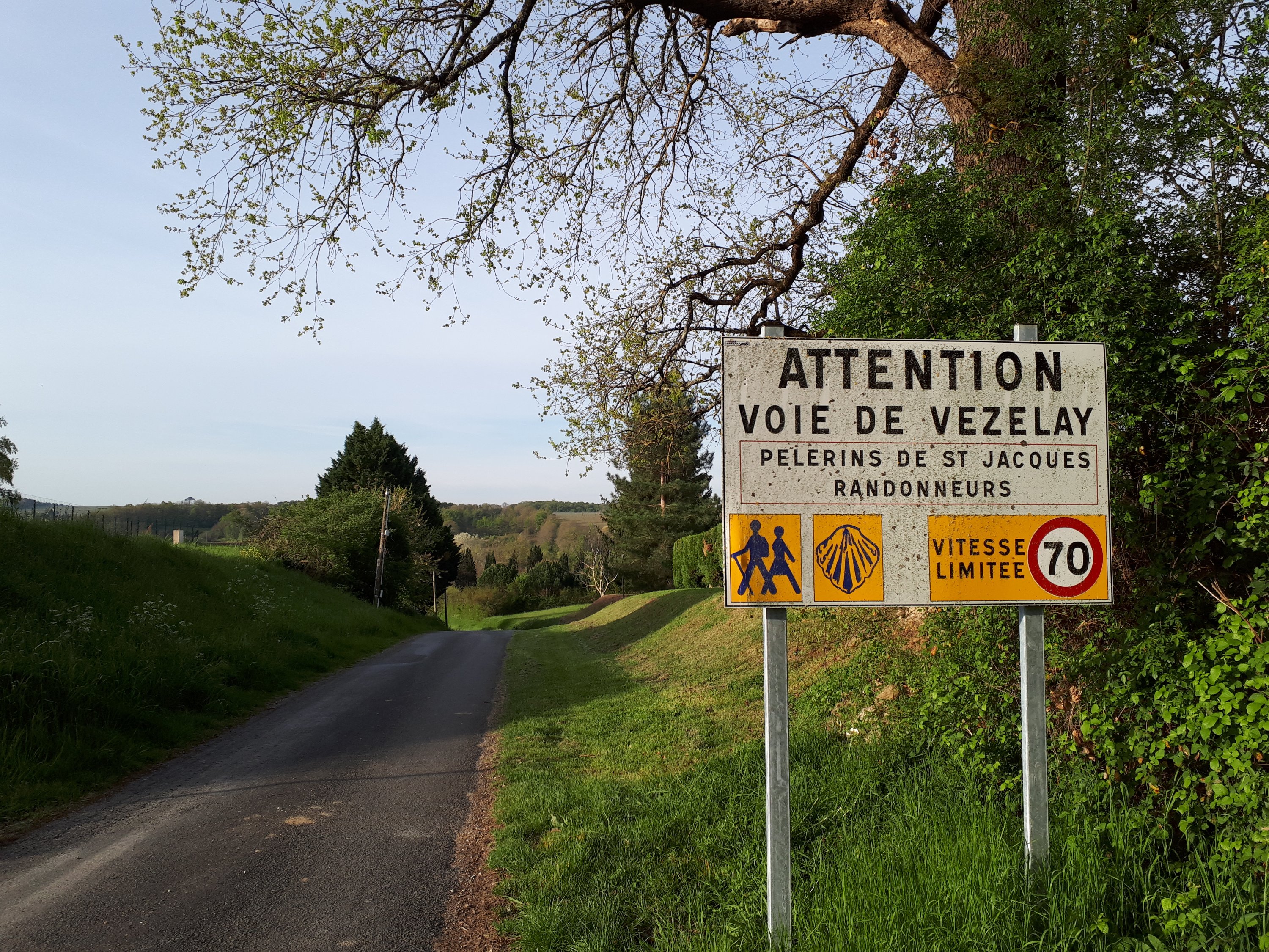 De dag bood eigenlijk niet veel spectaculairs meer. Voetpaden en wat verderop landwegen. Het begin grijzer en grijzer te worden en de druppels kwamen naar beneden. Rinkel deze schattige Jacobus gezien.