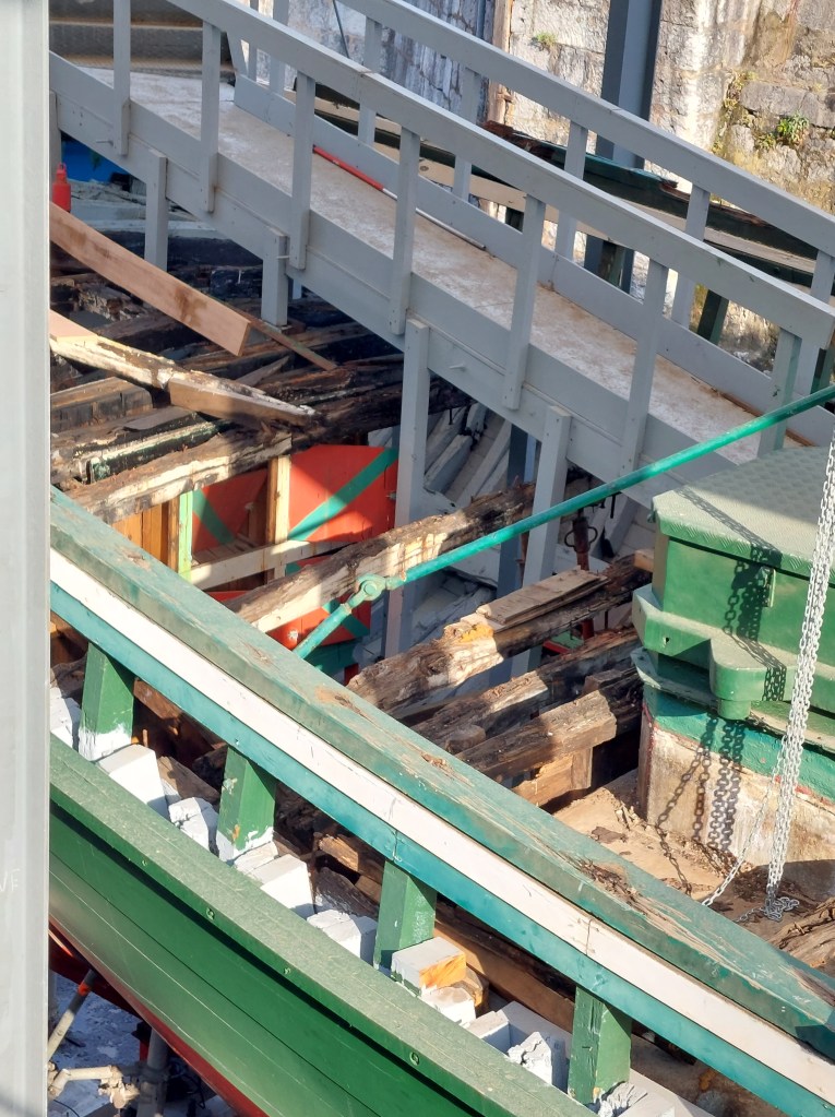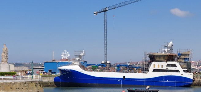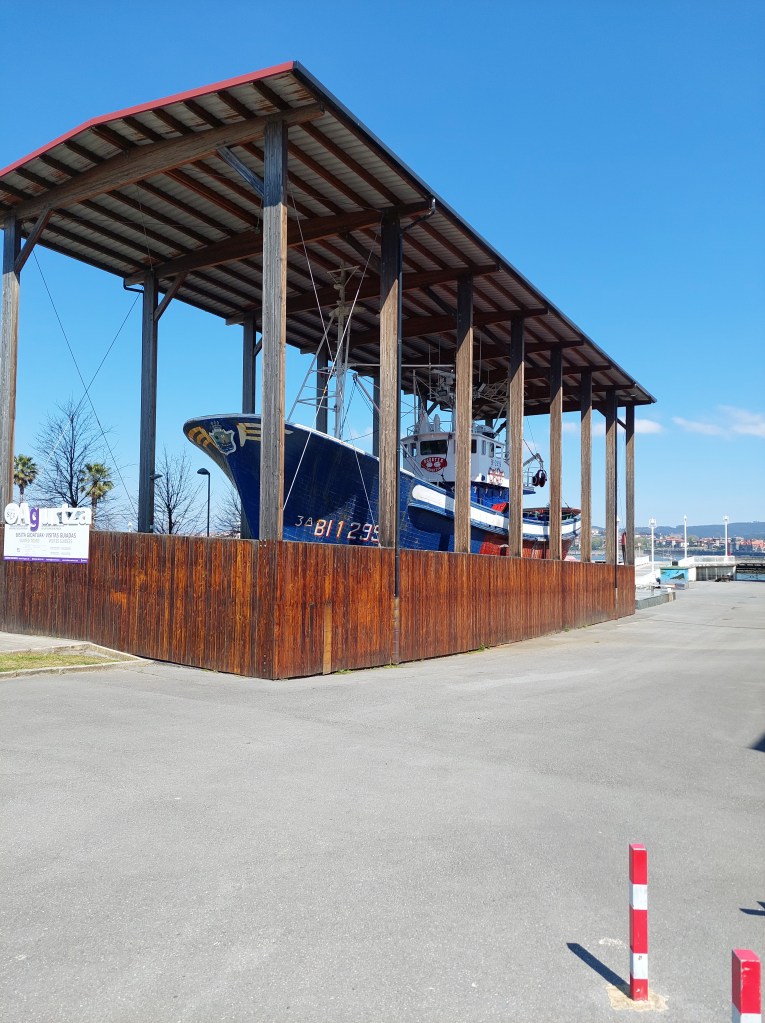 Te bezoeken. Maar wat verderop ligt een nog actieve scheepswerf, en daar worden de moderne visserijboten bewerkt. Wat een verschil. Groter, efficiënter, nieuwe technologie.