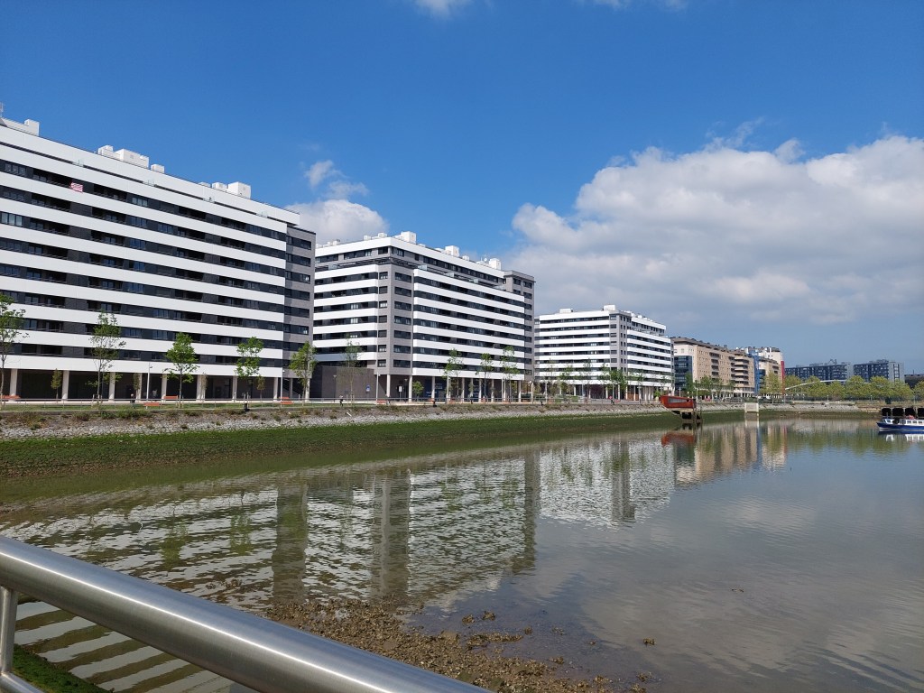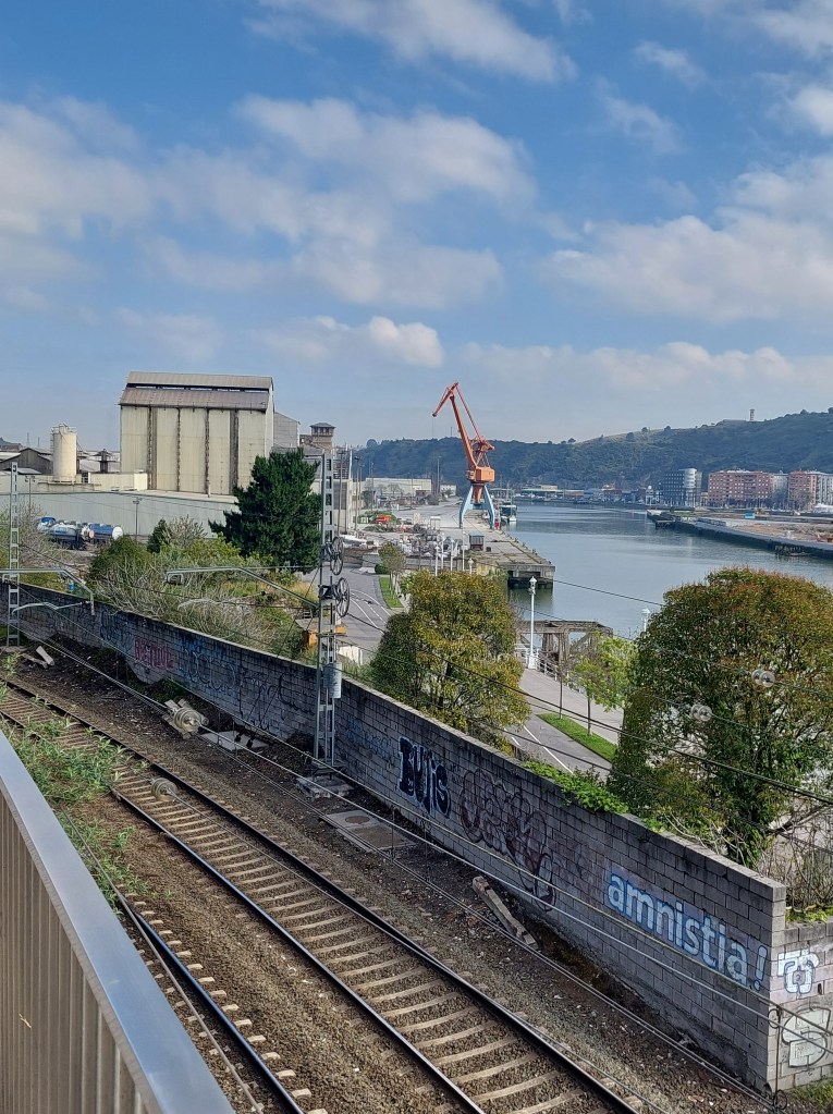 Je ziet echt van alles onderweg. Zoals elke oude haven moet ook Bilbao zich aanpassen. De oude haveninfrastructuur, die eigenlijk bijna niet meer gebruikt wordt en verloederd zoekt andere toepassingen of maakt plaats voor bewoning. Veel voorbeelden gezien langs de voortreffelijke promenade.