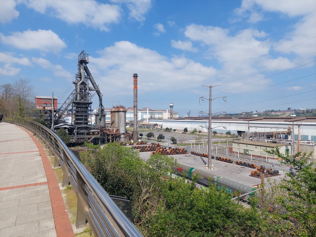 Verderop is al flink afgebroken en hele nieuwe woonblokken zijn neergezet. Bilbao is druk bewoond. Ik las ergens dat helft bewon ers Baskenland in die agglomeratie wonen. Barakaldo en dan Sestao zijn plaatsen waar heel veel haven verwijderd werd ten voordele van woonblokken. Maar toch staat er nog productie van een gekend bedrijf. Arcelor Mital, staal. Maar ook daar staat industriële archeologie te roesten.