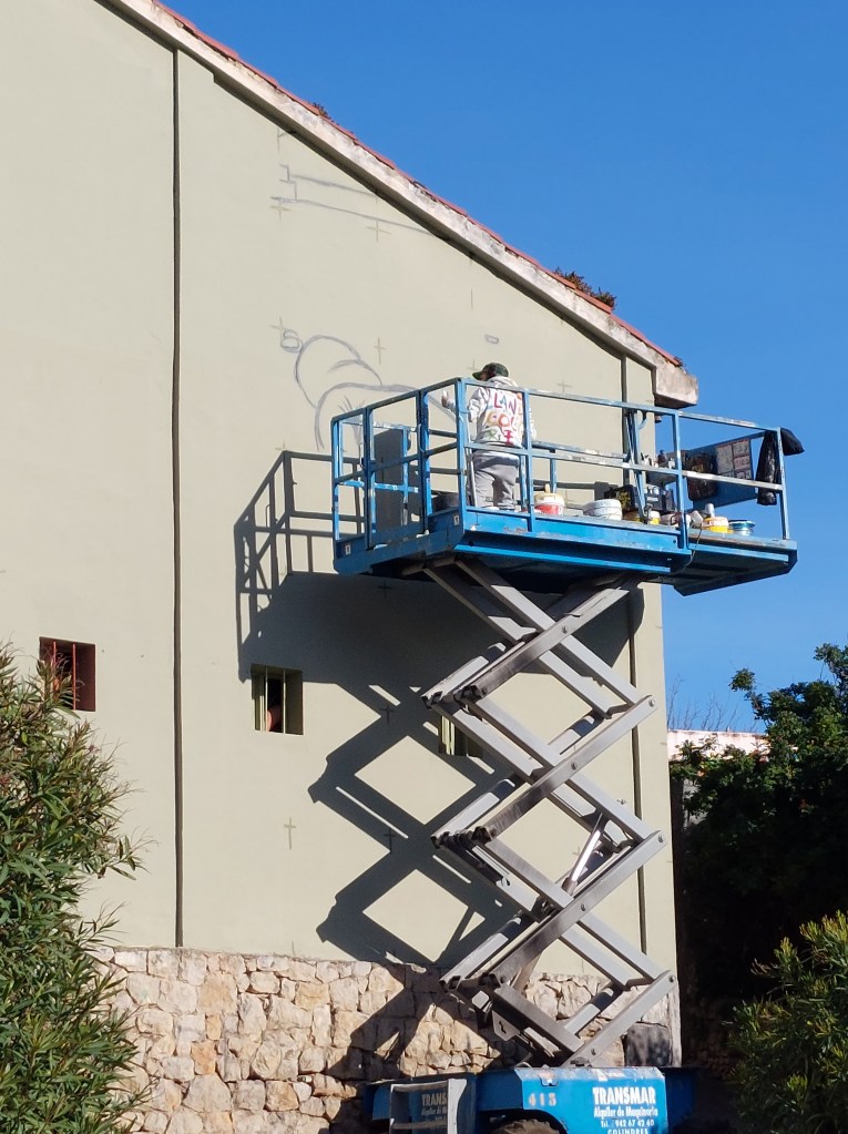 Daarna de stad uit via weer kilometers lanen allerhande. Onderweg toch wat verwondering met deze muurschilder aan het werk. Benieuwd wat hij uit zijn spuitbussen tovert.