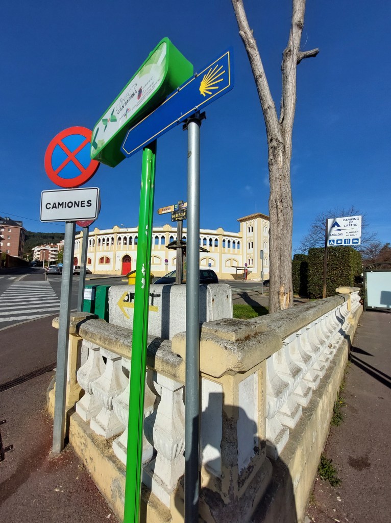 Een van de laatste Camino wachters toonde me de weg. De autoweg over en de stadsring. Een signaal dat ik er was en daar was het bord dat ik de stad introk. Vanaf nu enkel huizen.