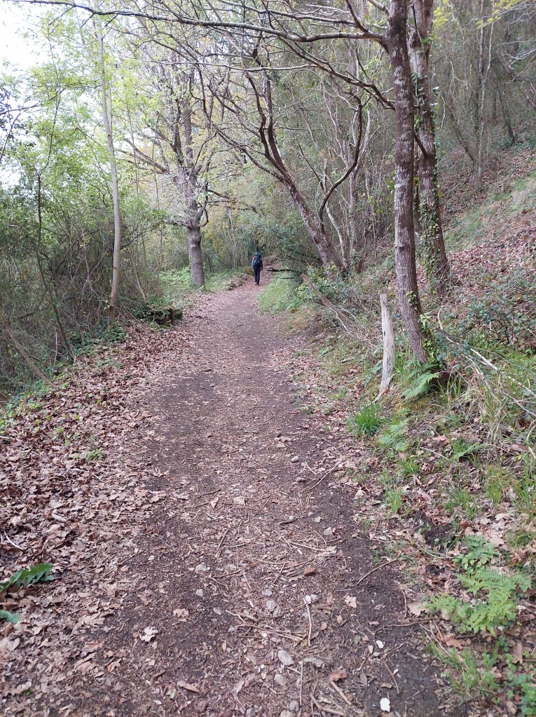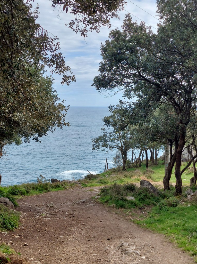 Voorbij het dorpje Cerdigo gaat de wandelweg onder de autoweg door en wordt het een kustpad, eerst tussen de bomen en daarna langs de klippen.