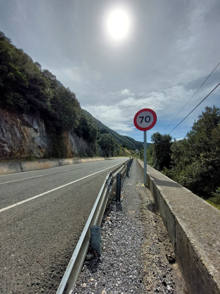 Dan gaat de officiële route nog een toer van bijna 20 km rond in de binnenlandse heuvels. Ik nam echter de hoofdweg verder. Die liep af en toe langs de autoweg ook. Dus wel wat kabaal. Ook een stukje via een paralel bospad.