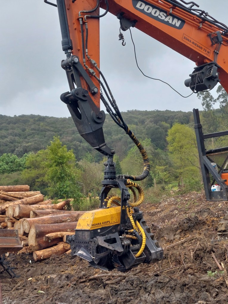 Langs de (natte) landwegen was het rustig heel rustig. Alleen een paar houthakkers met stevig materiaal.