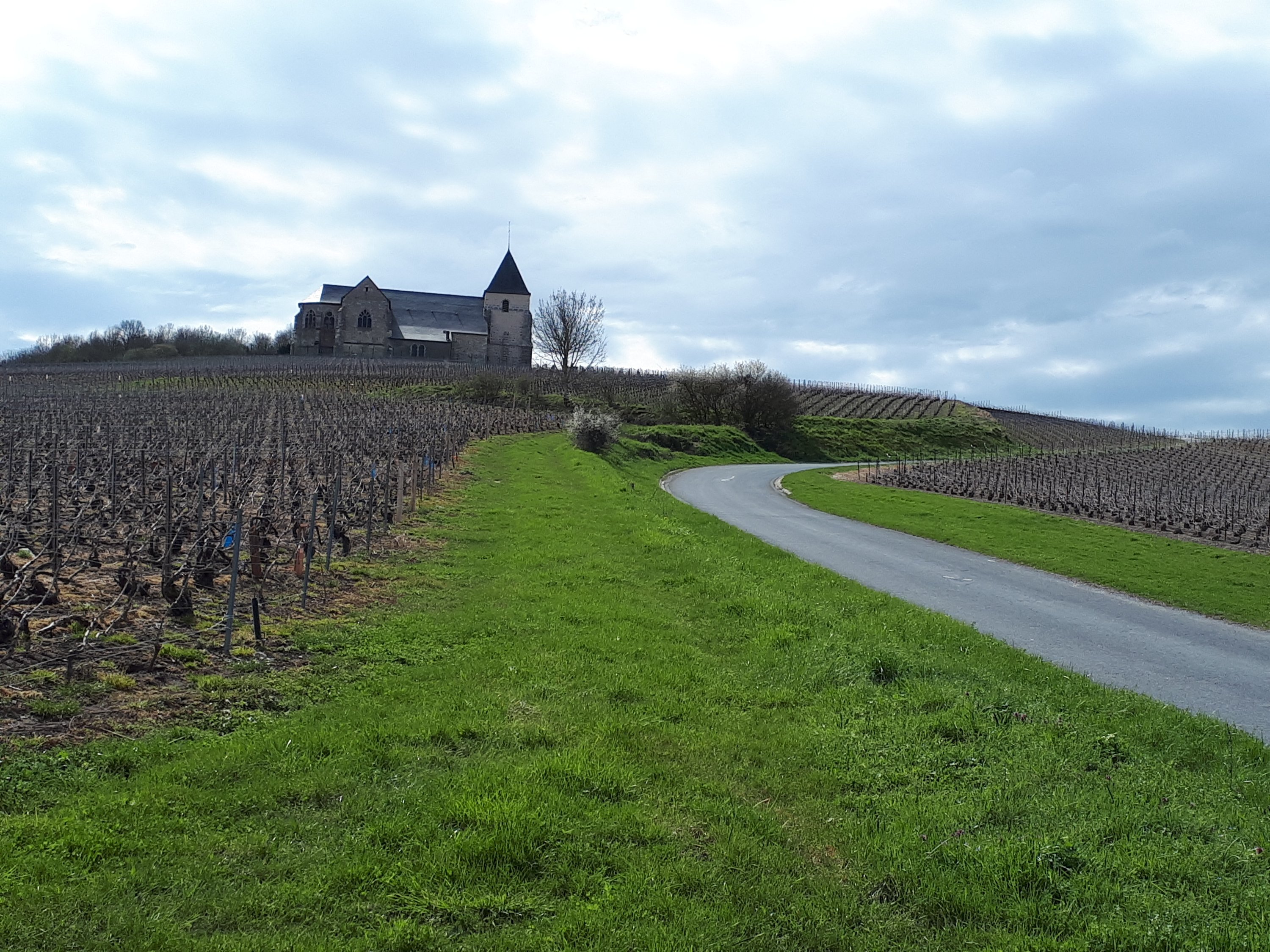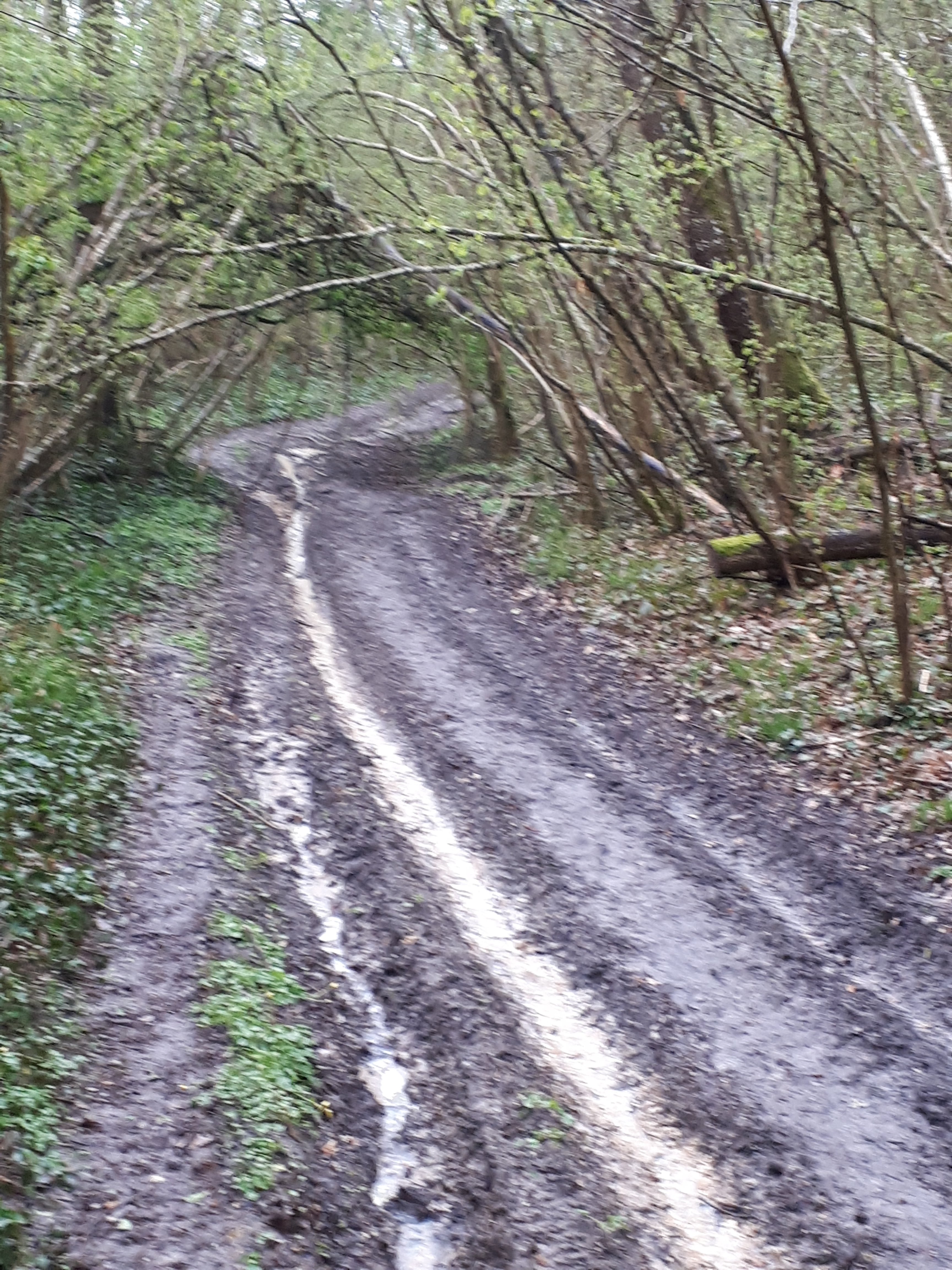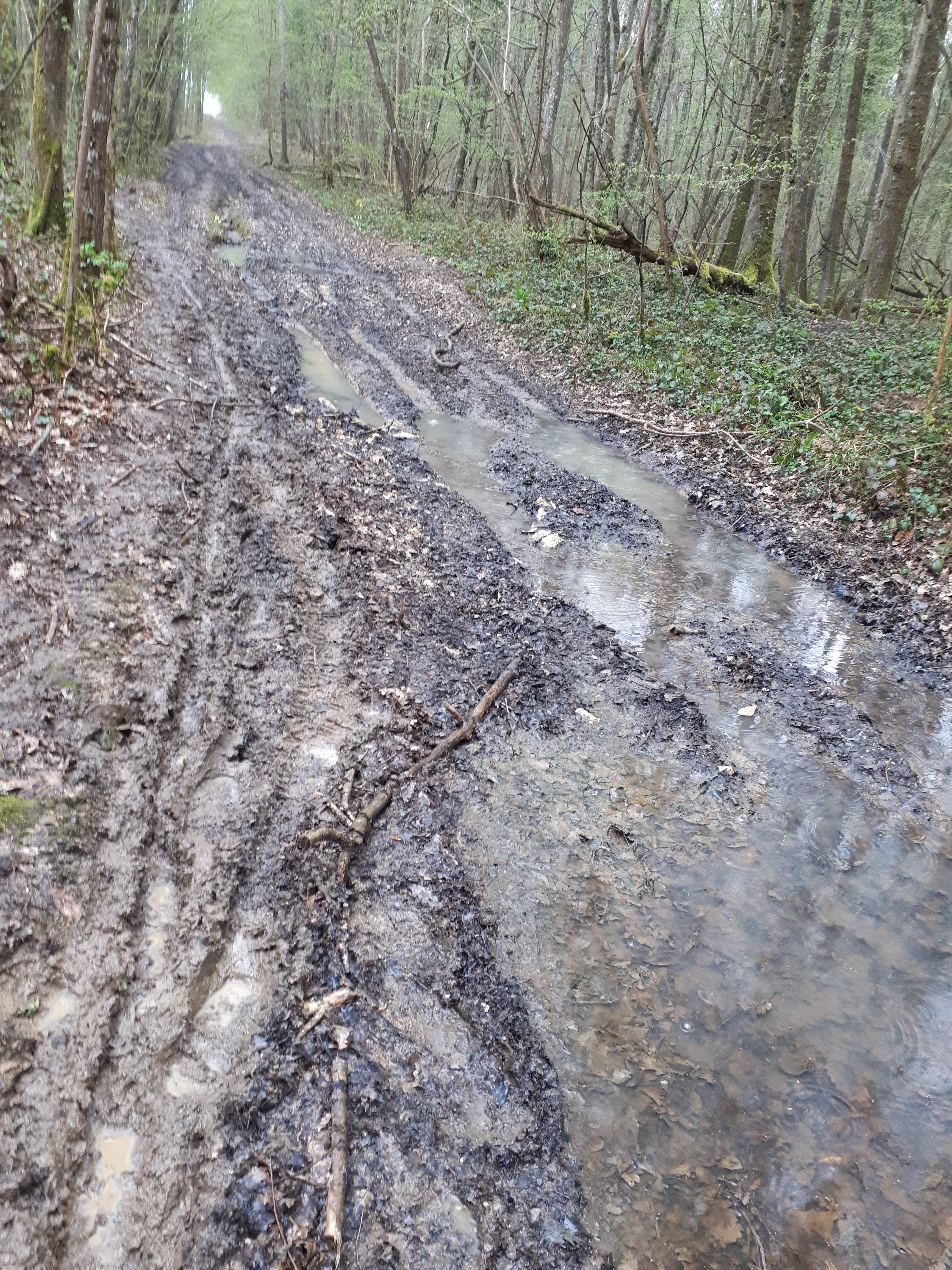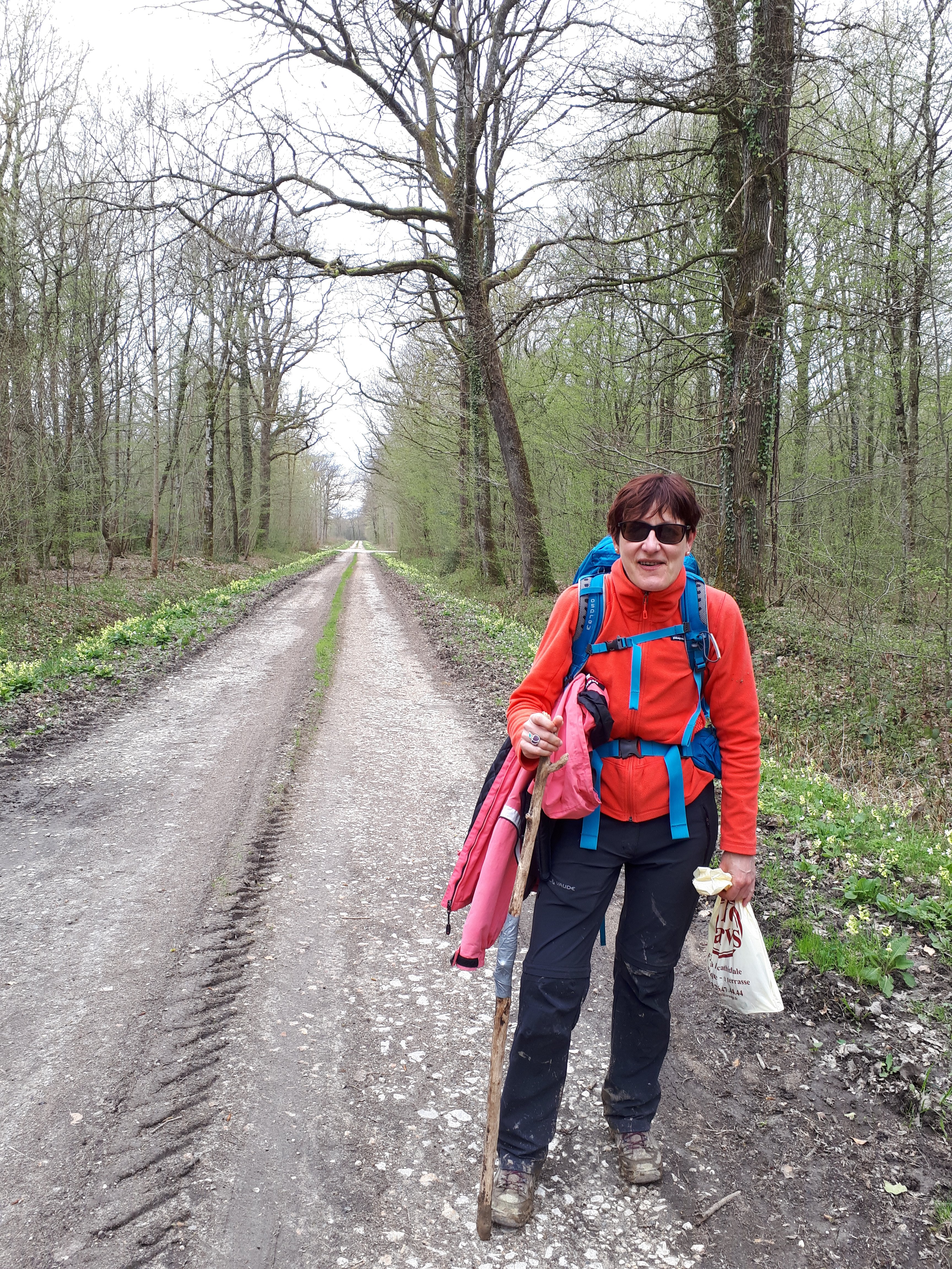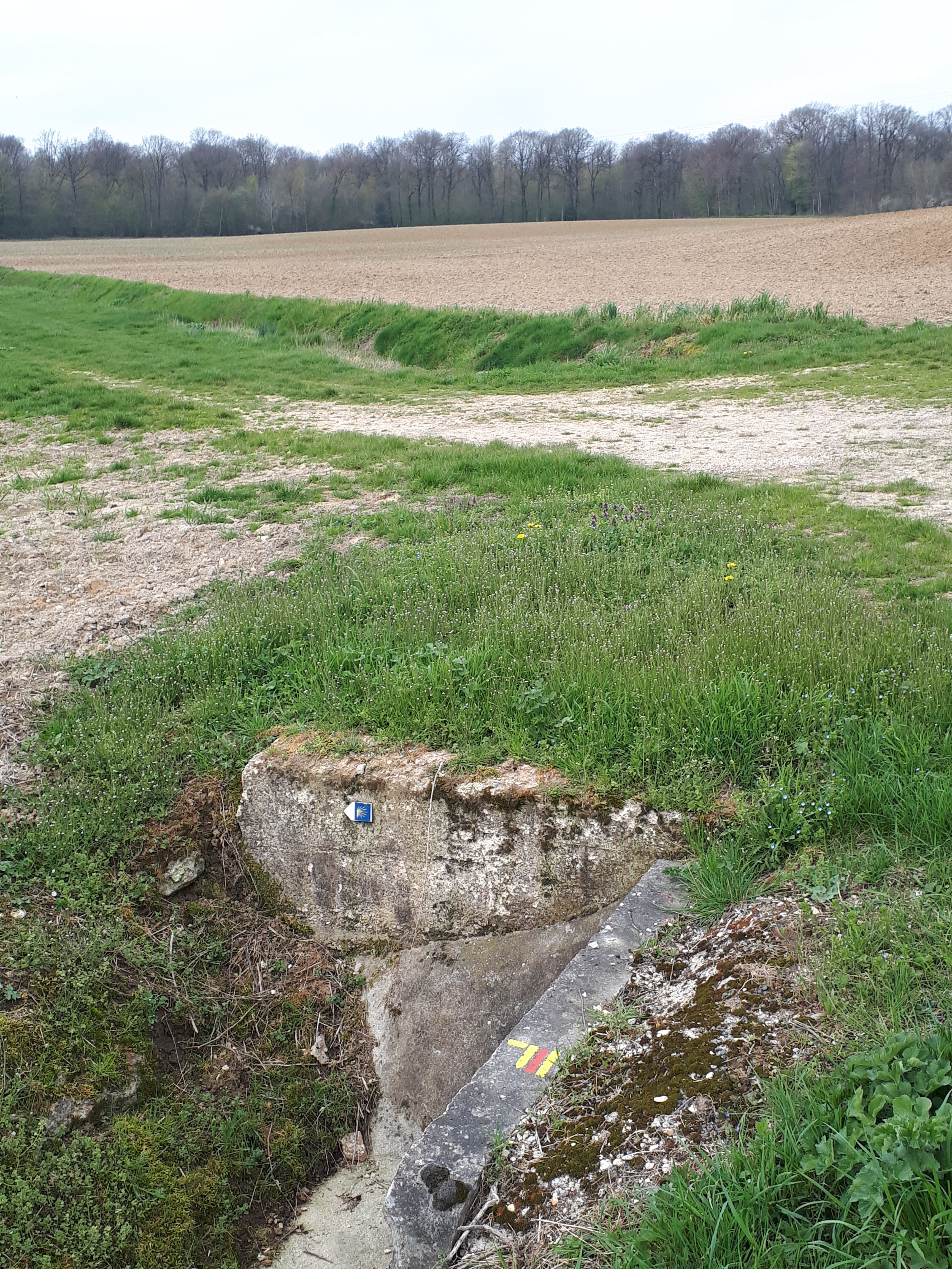 Op en neer gaat de tocht. Geen levende ziel te bespeuren. Het is een stukje desolaat gebied waar ik doorheen loop. Doet me wat denken aan de Landes, maar dan heuvelachtiger. Na 6 a 7 km toch teken van leven.