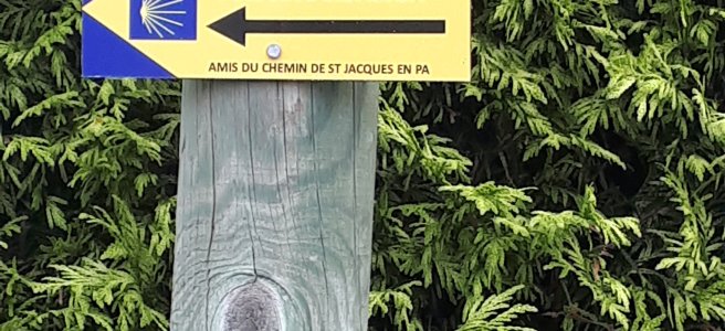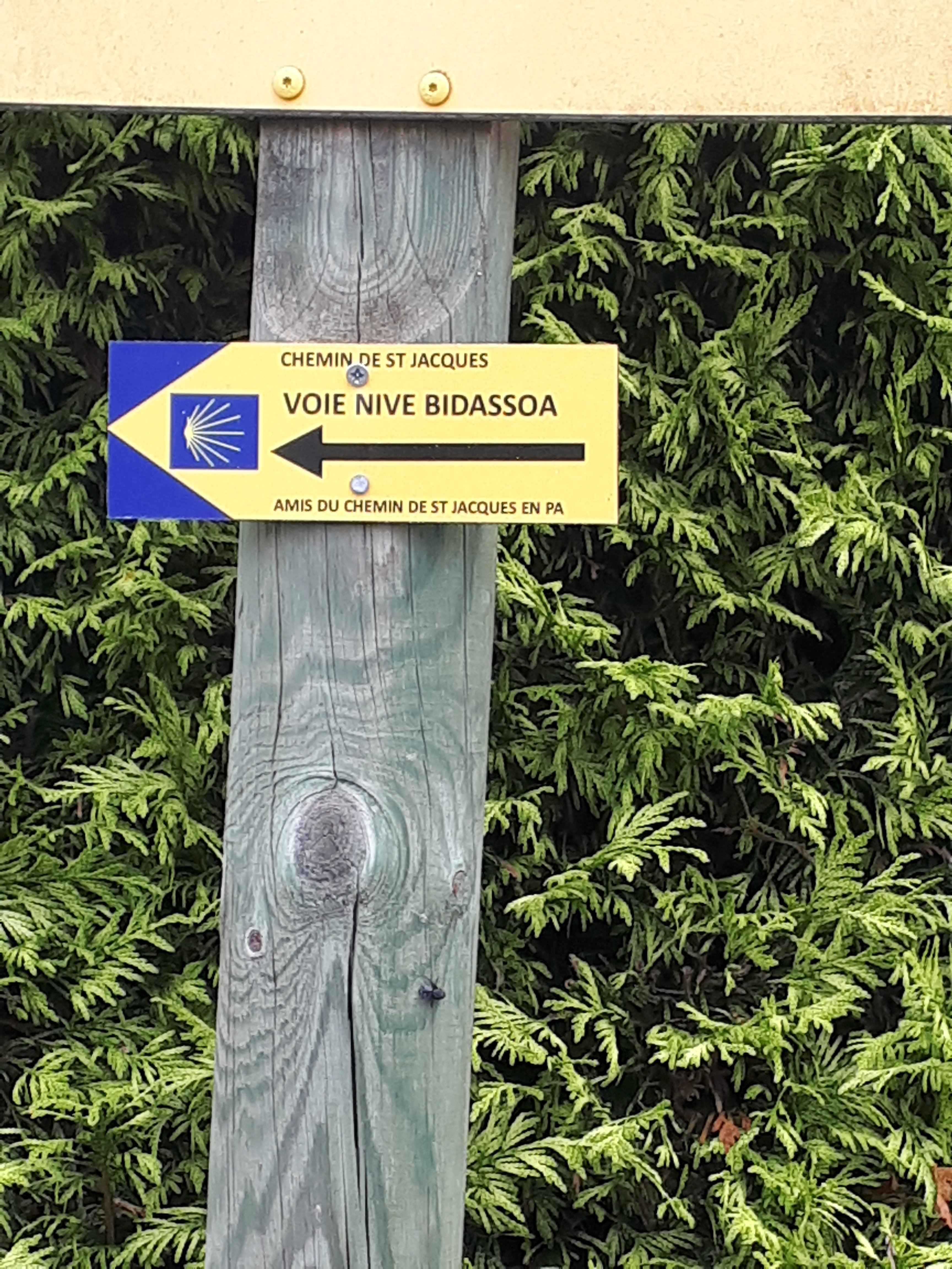 Voie Nive Bidasoa staat er te lezen op de wegwijzers met de schelp.